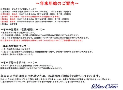 当店のお盆休みは10月28日〜30日となります。 この期間はトリミング・ホテルの受付・お返しはできませんので、…